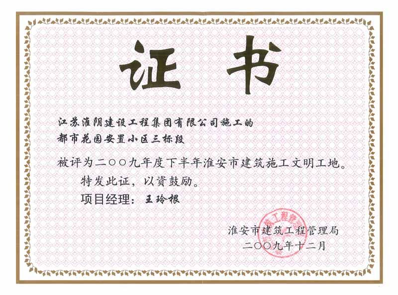 2009年市文明工地都市花園安置小區(qū)三標(biāo)段-王玲根