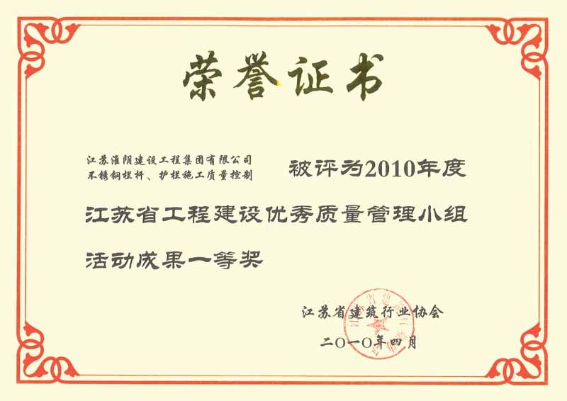 2010年省優(yōu)質(zhì)一等獎(jiǎng)(不銹鋼欄桿、護(hù)欄施工質(zhì)量控制)