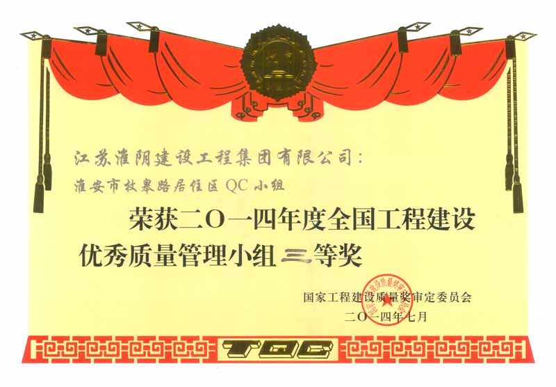 2014年度全國工程建設(shè)優(yōu)秀質(zhì)量管理小組三等獎(jiǎng)淮安市枚皋路居住區(qū)QC小組