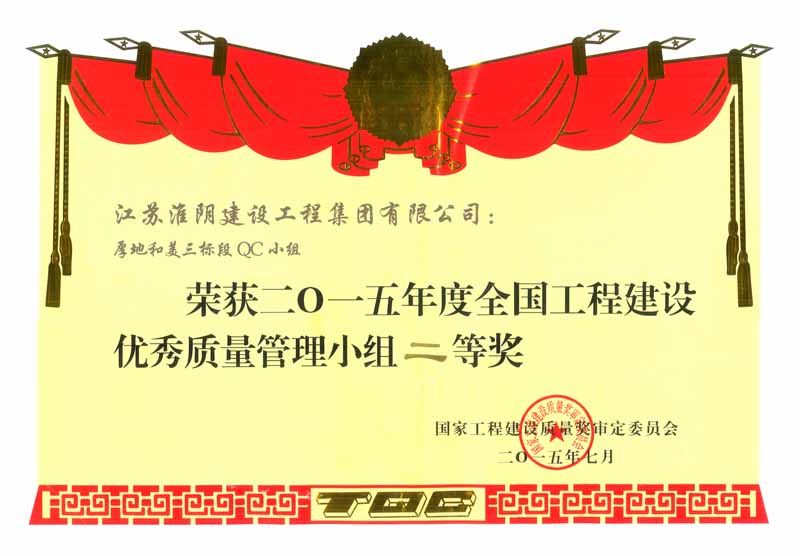 2015年全國工程建設(shè)優(yōu)秀質(zhì)量管理小組二等獎(jiǎng)厚地和美三標(biāo)段QC小組