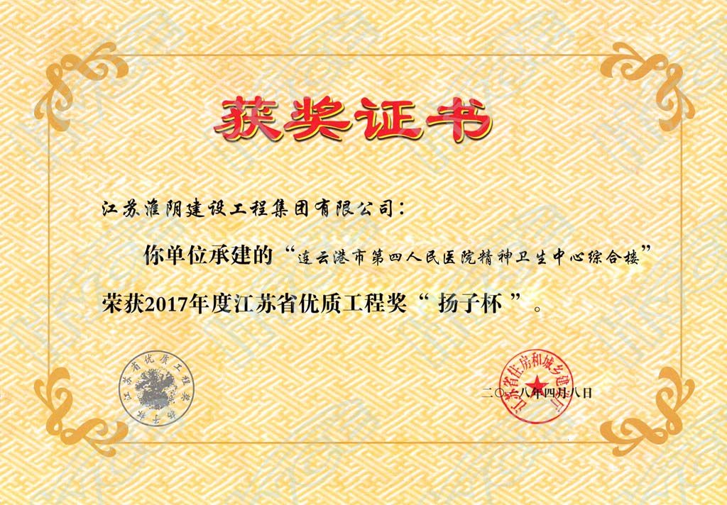 2017年度江蘇省優(yōu)質(zhì)工程獎(jiǎng)“揚(yáng)子杯”-連云港市第四人民醫(yī)