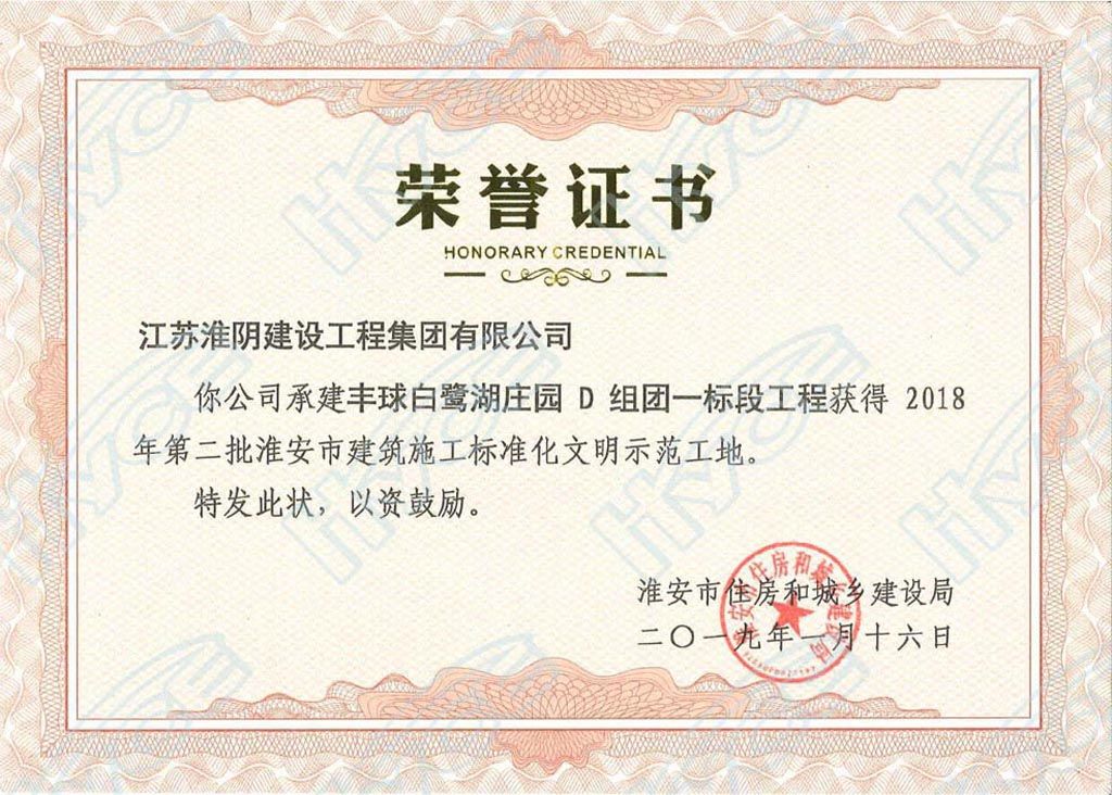 淮安市建筑施工標(biāo)準(zhǔn)化文明示范工地-豐球白鷺湖莊園D組團工程