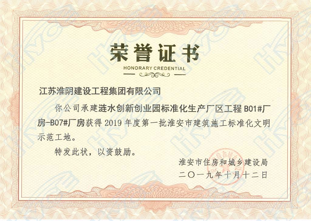 淮安市建設(shè)施工標(biāo)準(zhǔn)化文明示范工地-漣水創(chuàng)業(yè)園
