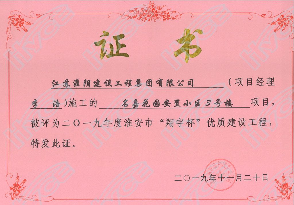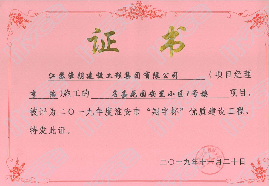淮安市“翔宇杯”優(yōu)質(zhì)建設(shè)工程-名嘉花園安置小區(qū)1號(hào)樓
