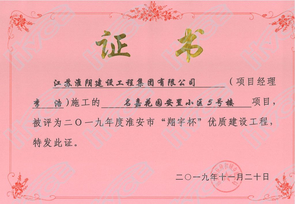 淮安市“翔宇杯”優(yōu)質(zhì)建設(shè)工程-名嘉花園安置小區(qū)5號(hào)樓