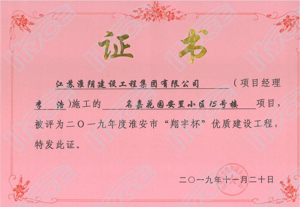 淮安市“翔宇杯”優(yōu)質(zhì)建設(shè)工程-名嘉花園安置小區(qū)15號(hào)樓