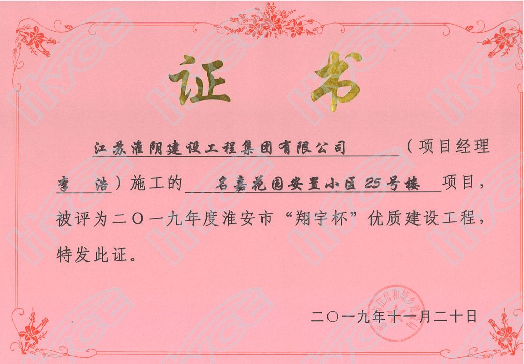 淮安市“翔宇杯”優(yōu)質(zhì)建設(shè)工程-名嘉花園安置小區(qū)25號(hào)樓