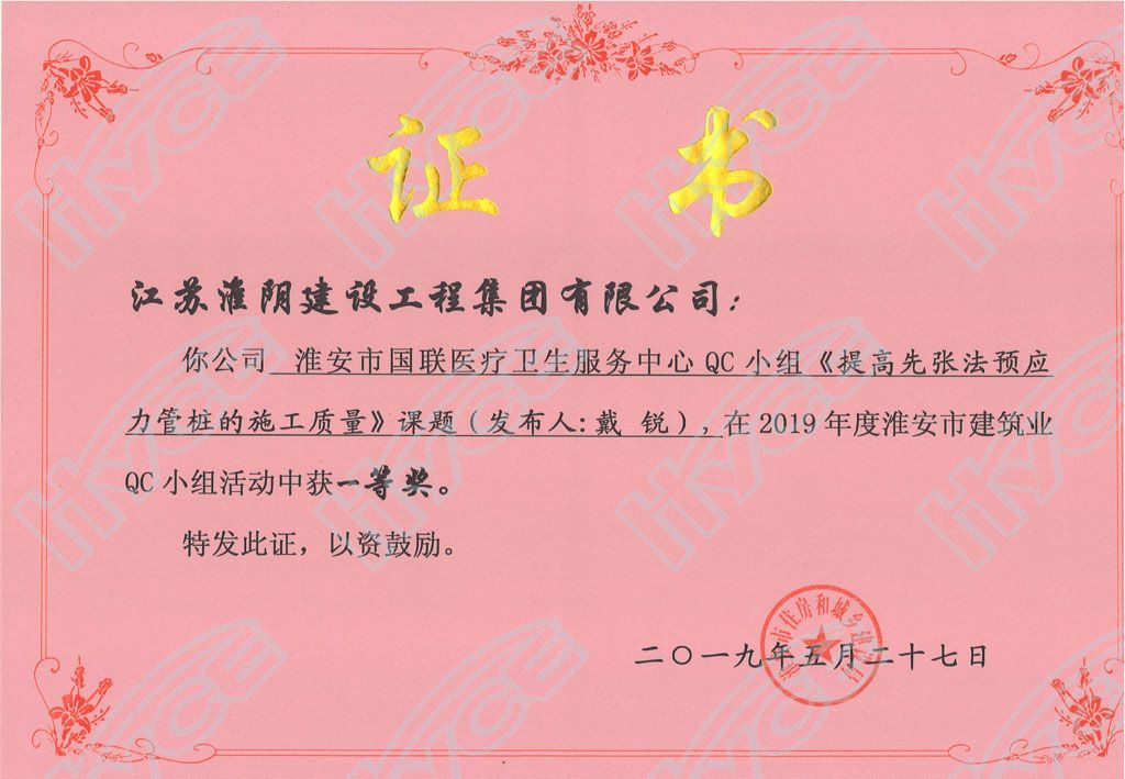 淮安市建筑業(yè)QC小組一等獎(jiǎng)