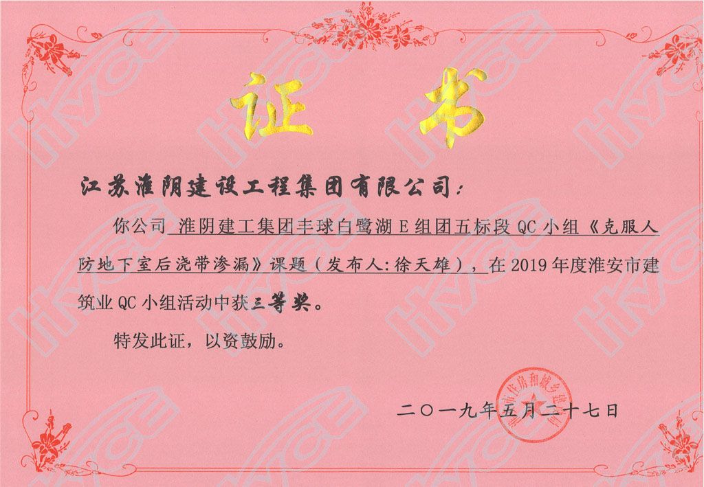 淮安市建筑業(yè)QC小組三等獎(jiǎng)