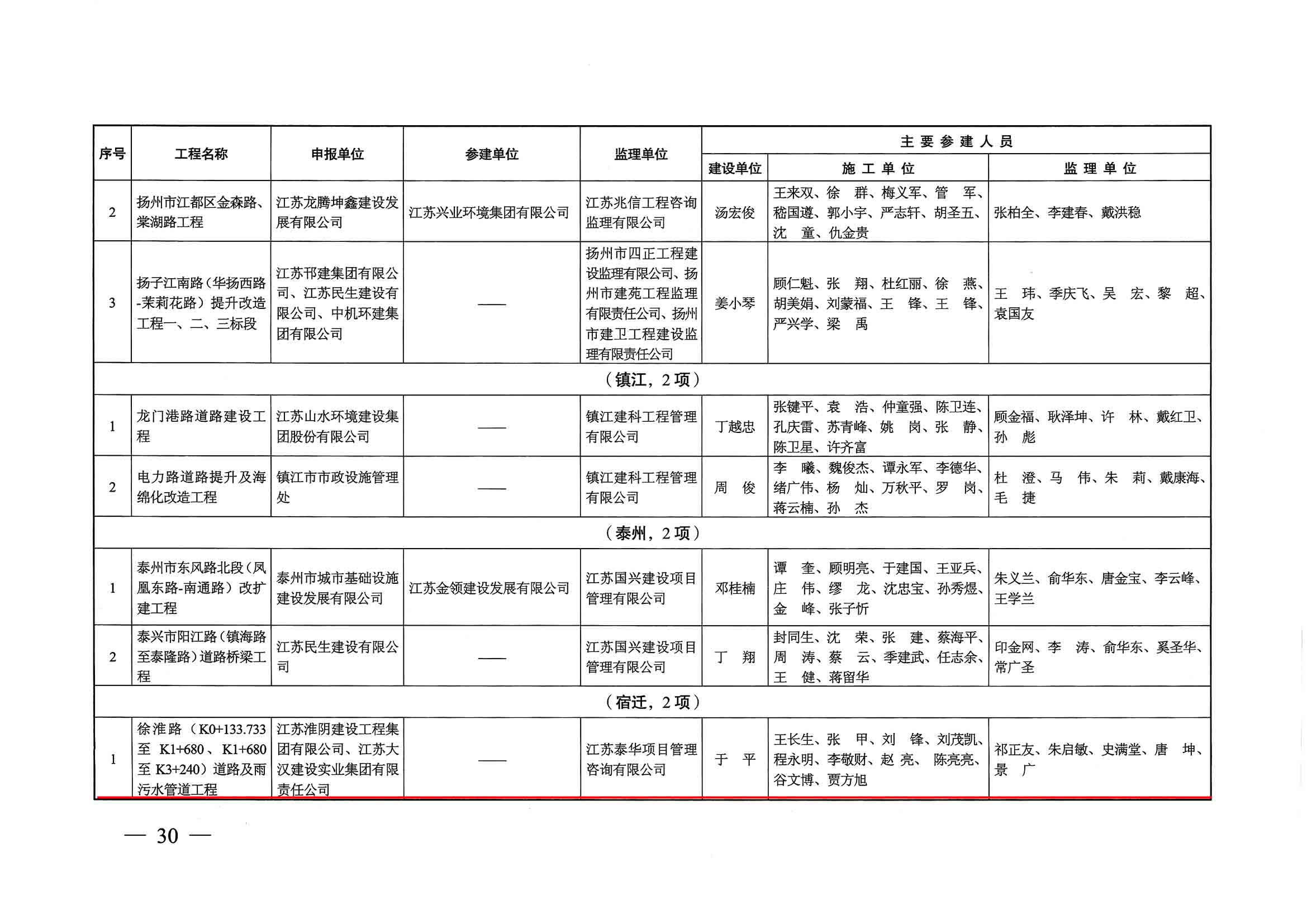 2019年度江蘇省優(yōu)質(zhì)工程獎(jiǎng)“揚(yáng)子杯”-徐淮路道路及雨污水管道工程