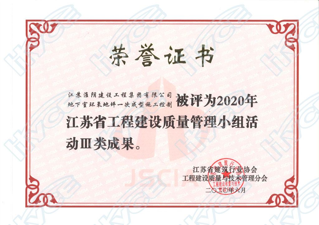 江蘇省工程建設(shè)質(zhì)量管理小組活動(dòng)III類成果
