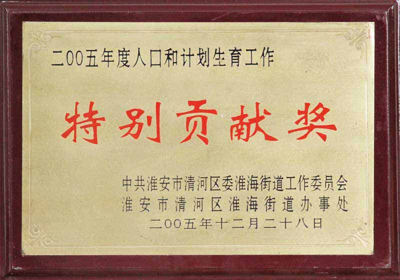 2005年人口和計(jì)劃生育工作特別奉獻(xiàn)獎(jiǎng)