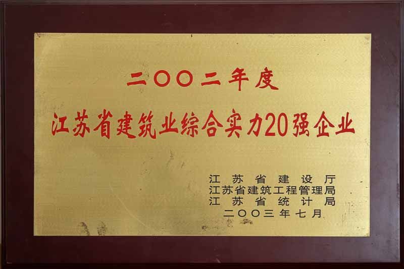 2002年江蘇省建筑業(yè)綜合實(shí)力20強(qiáng)企業(yè)