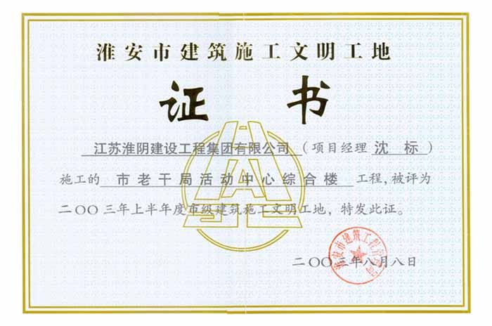 2003年市級文明工地市老干局活動(dòng)中心綜合樓(沈標(biāo))
