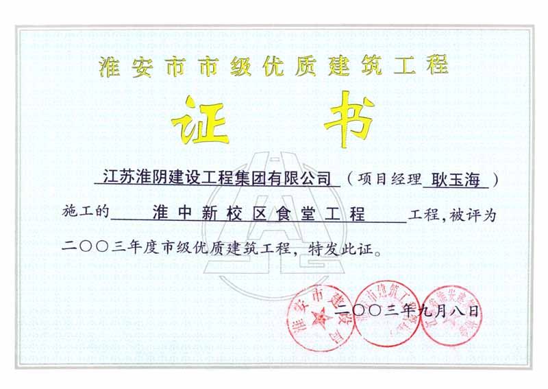 2003年市級(jí)優(yōu)質(zhì)工程淮中新校區(qū)食堂工程(耿玉海)