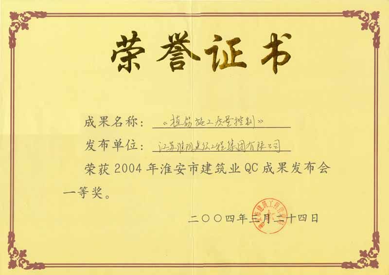2004年市級QC植筋施工質(zhì)量控制(一等獎)