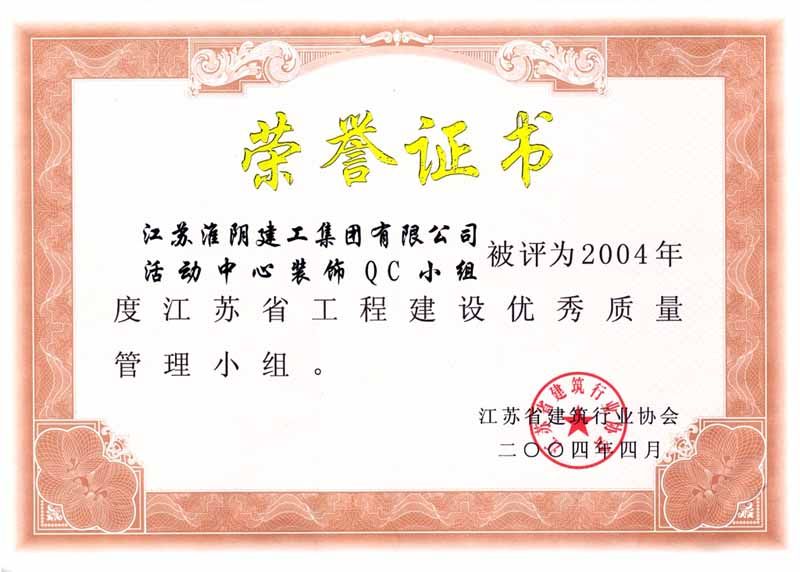 2004年市級QC老干部活動中心裝飾QC小組(優(yōu)秀質(zhì)量管理小組)