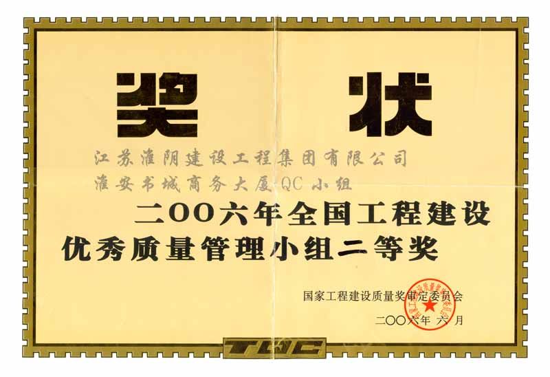 2006年全國工程建設(shè)優(yōu)秀質(zhì)量管理小組二等獎-書城