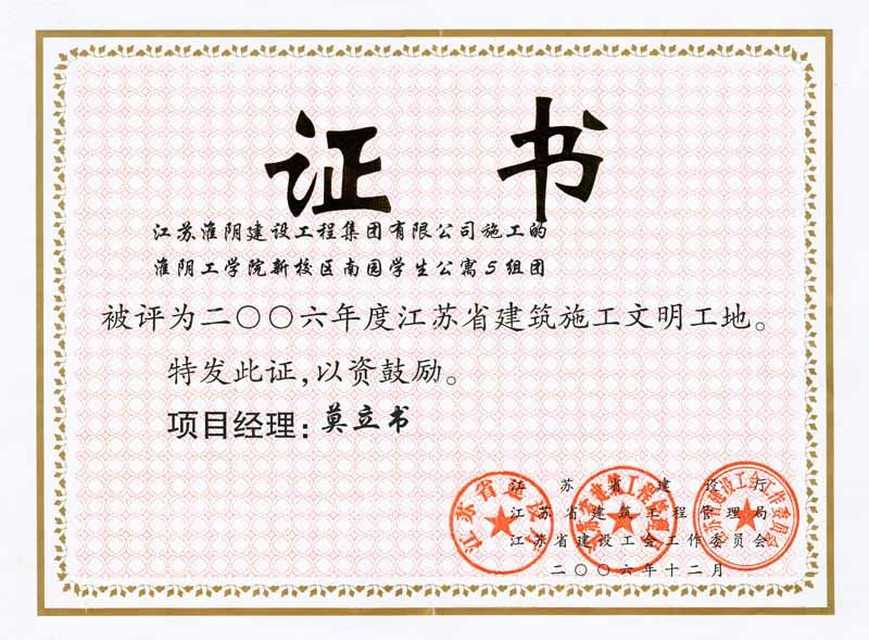 2006年省級建筑施工淮陰工學(xué)院新校區(qū)南園學(xué)生公寓5組團(tuán)-莫立書