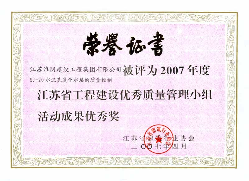 2007年省工程建設優(yōu)秀質量管理小組活動成果優(yōu)秀獎-SJ-20水泥基復合水層的質量控制