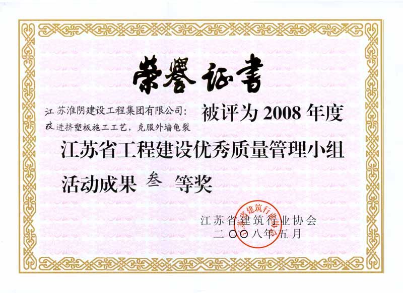 2008年省工程建設優(yōu)秀質(zhì)量管理小組活動成果叁等獎-改進擠塑板施工工藝、克服外墻龜裂