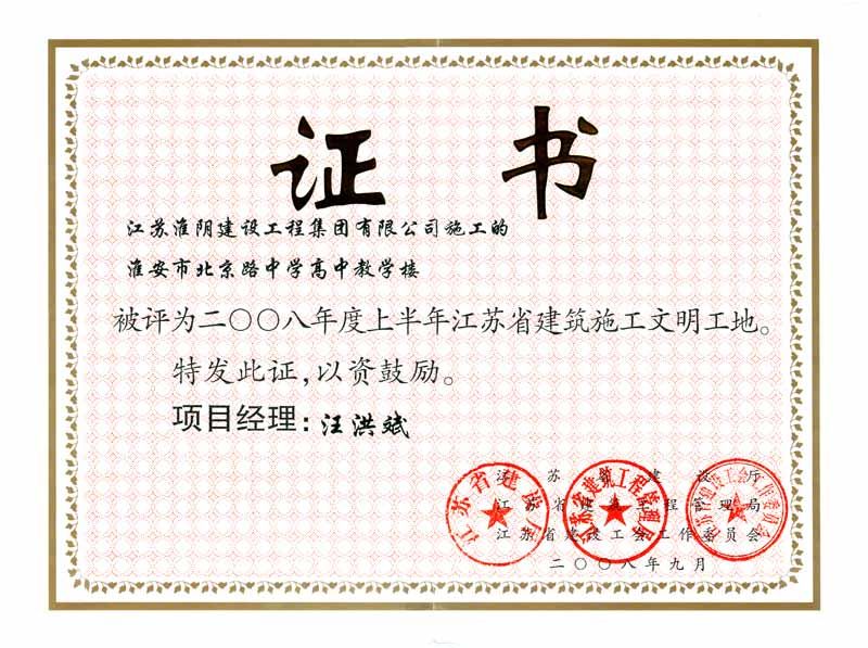 2008年省文明工地-淮安市北京路中學(xué)高中教學(xué)樓-汪洪斌