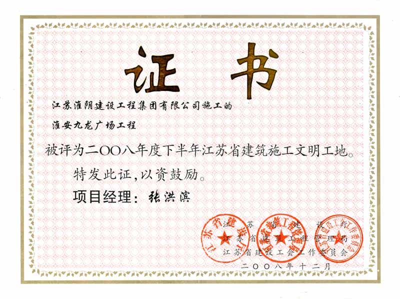 2008年省文明工地-淮安九龍廣場-張洪濱