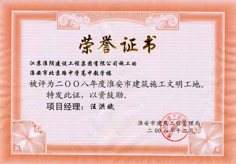 2008年市文明工地淮安市北京路中學(xué)高中教學(xué)樓-汪洪斌