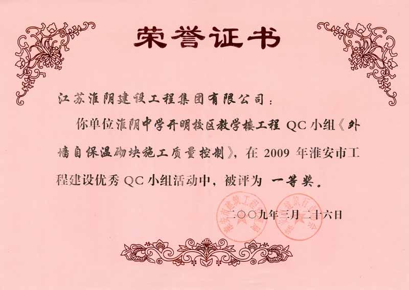 2009年市QC一等獎(jiǎng)(淮陰中學(xué)開(kāi)明校區(qū)教學(xué)樓-外墻自動(dòng)保溫砌塊施工質(zhì)量控制)