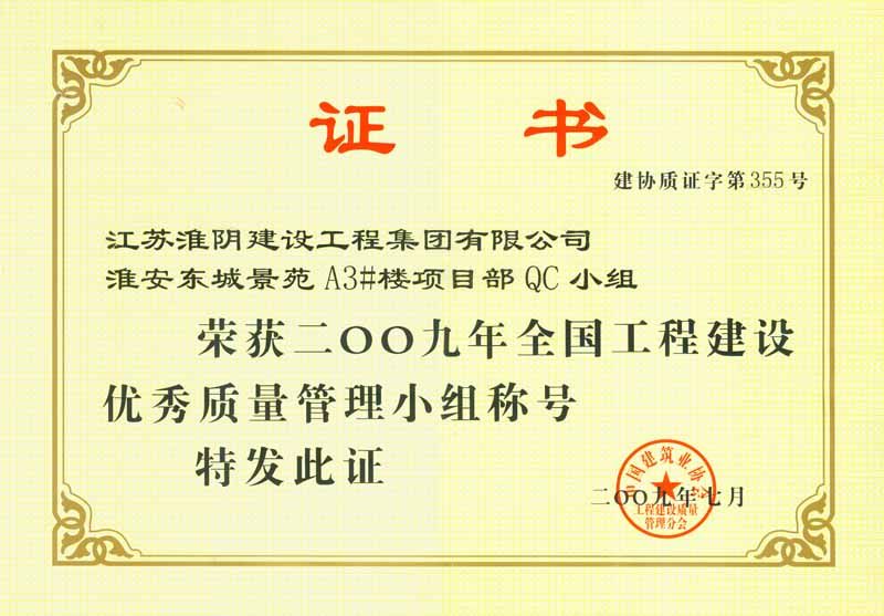 2009年全國工程建設(shè)優(yōu)秀質(zhì)量管理小組-東城景苑A3樓