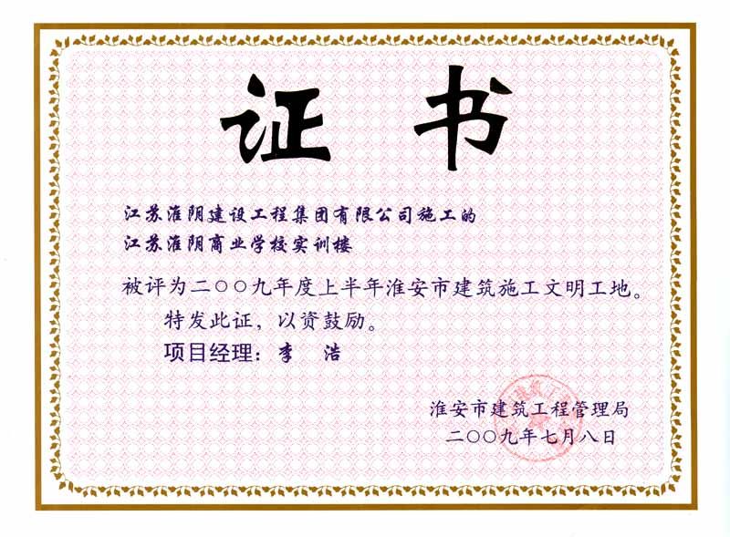 2009年市文明工地江蘇淮陰商業(yè)學校實訓樓-李浩