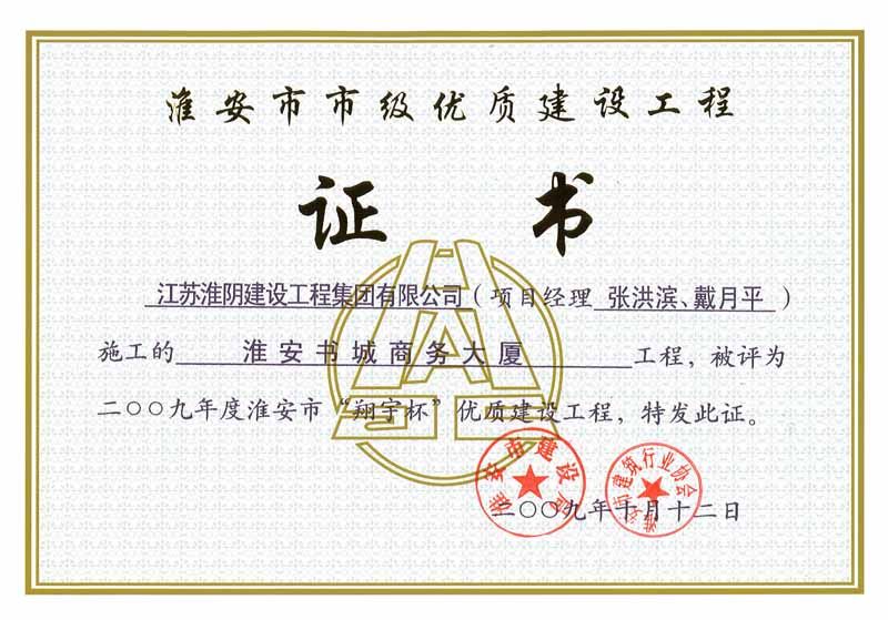 2009年市優(yōu)工程翔宇杯淮安書城商務大廈-張洪濱 戴月平