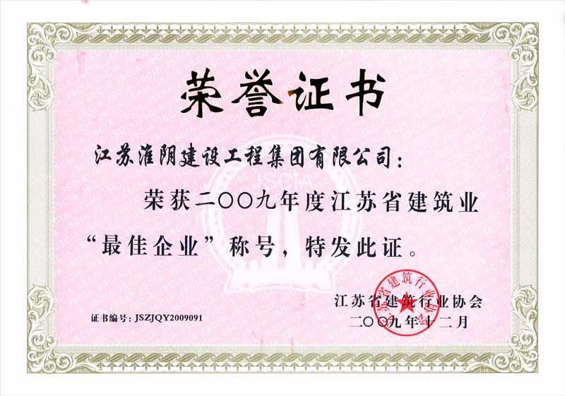 2009年江蘇省建筑業(yè)“最佳企業(yè)”