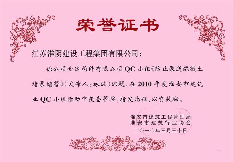 2010年市QC(一等獎(jiǎng))防止泵送混凝土堵泵堵管(金達(dá)構(gòu)件-林波)