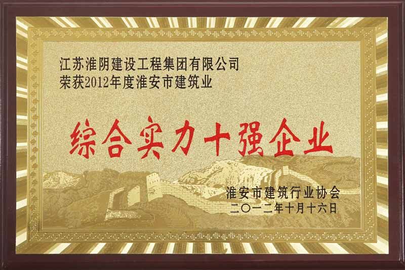 2012年淮安市建筑業(yè)綜合實(shí)力十強(qiáng)企業(yè)