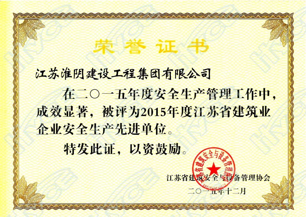 2015年度江蘇省建筑業(yè)企業(yè)安全生產先進單位