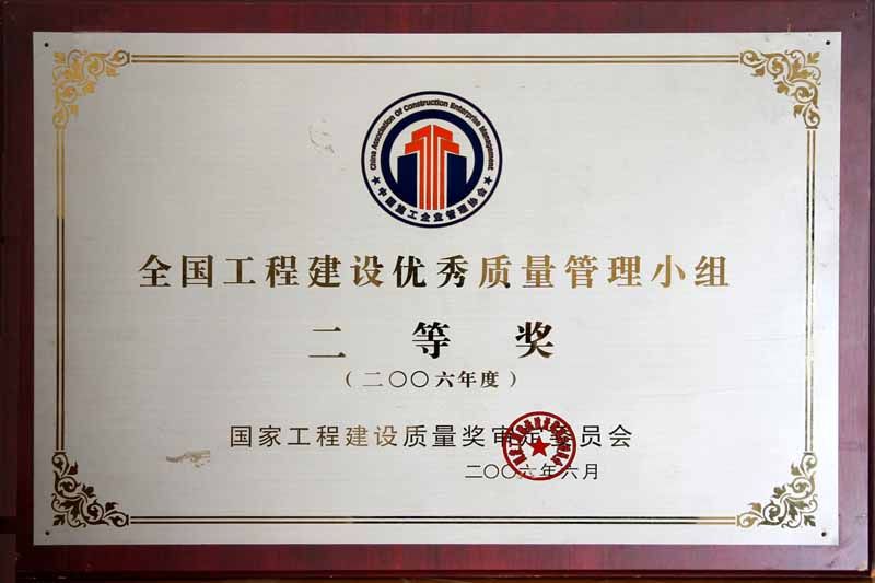 2006年全國(guó)工程建設(shè)優(yōu)秀質(zhì)量管理小組二等獎(jiǎng)
