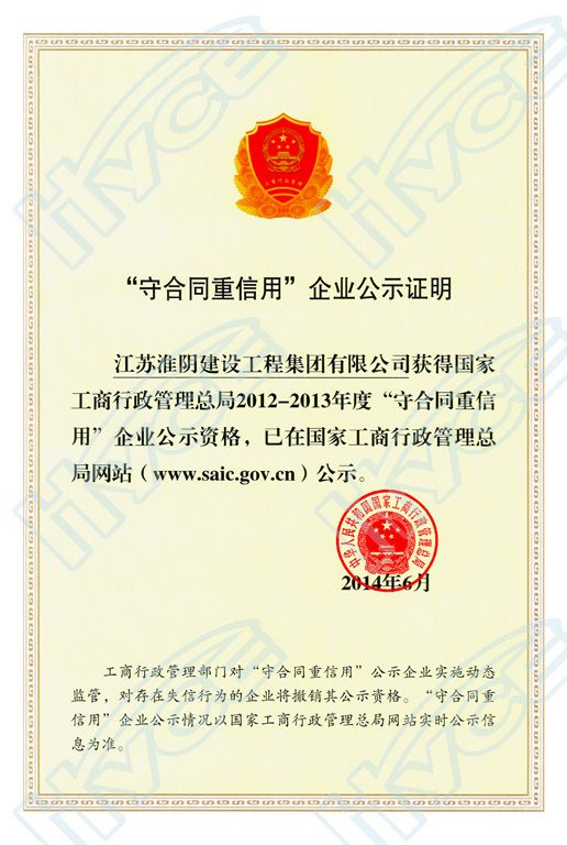 國(guó)家守合同重信用企業(yè)公示證明