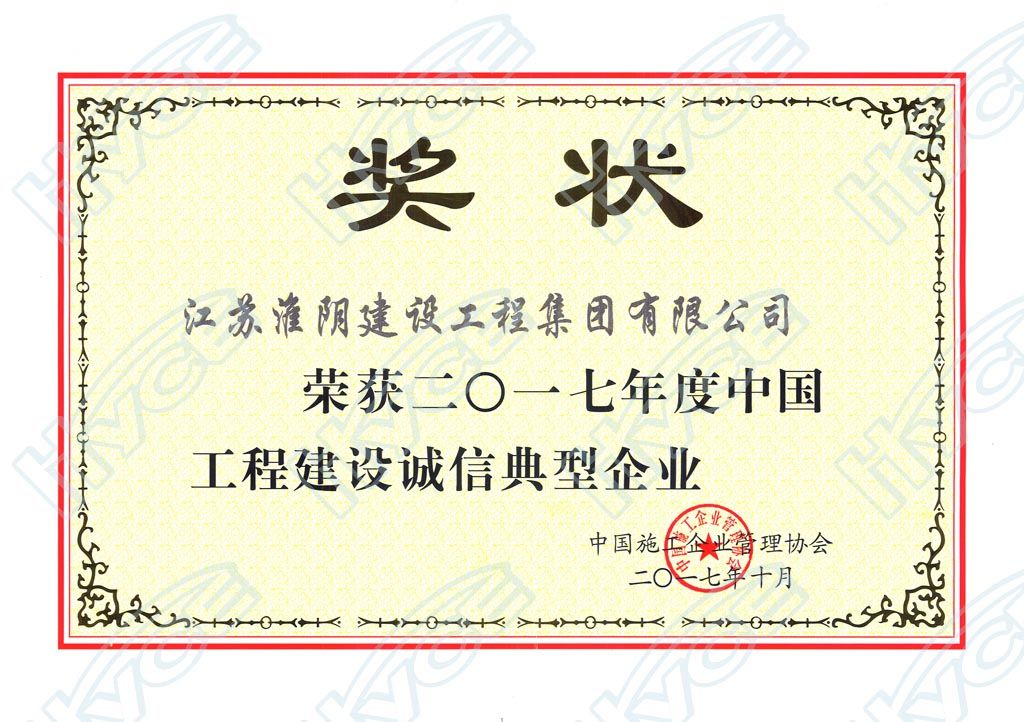 2017年度工程建設(shè)誠(chéng)信典型企業(yè)-中國(guó)施工企業(yè)管理協(xié)會(huì)