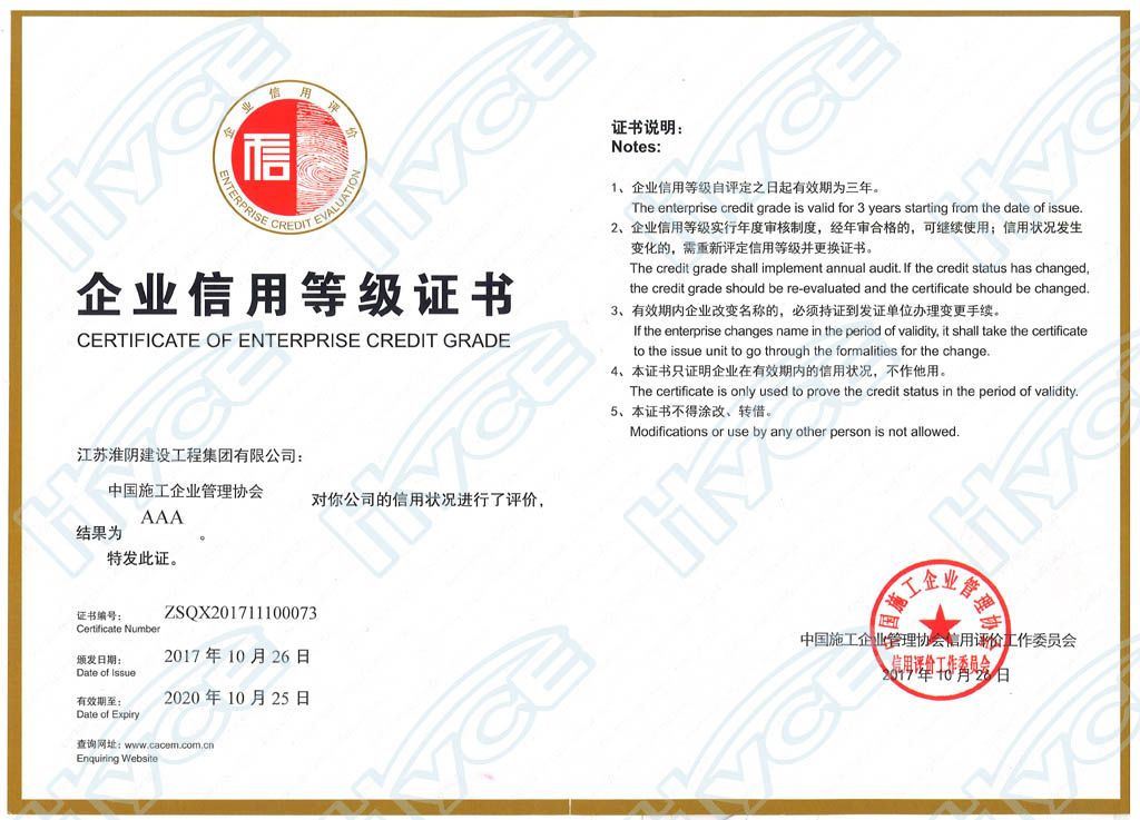 企業(yè)信用等級證書AAA-中國施工企業(yè)管理協(xié)會