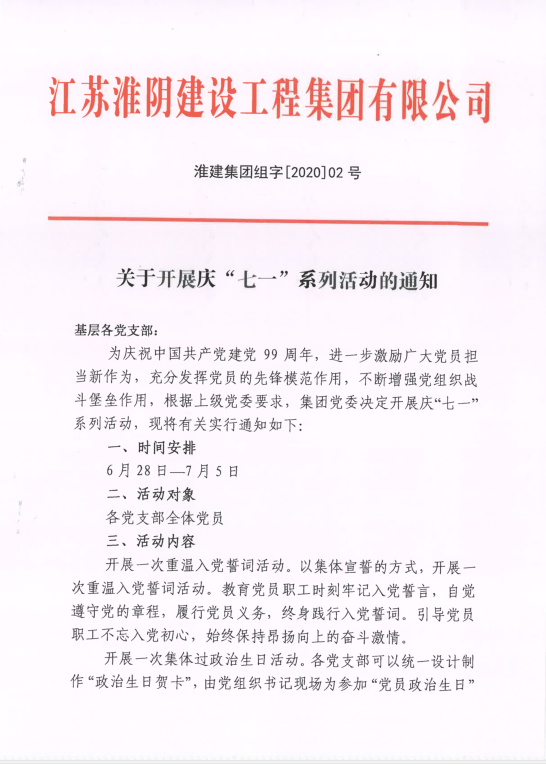 集團(tuán)關(guān)于開展慶“七一”系列活動的通知